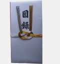 網白柄のベ-シックな和紙に赤い染めを施し、金銀十本の淡路結びにしています。